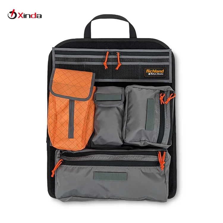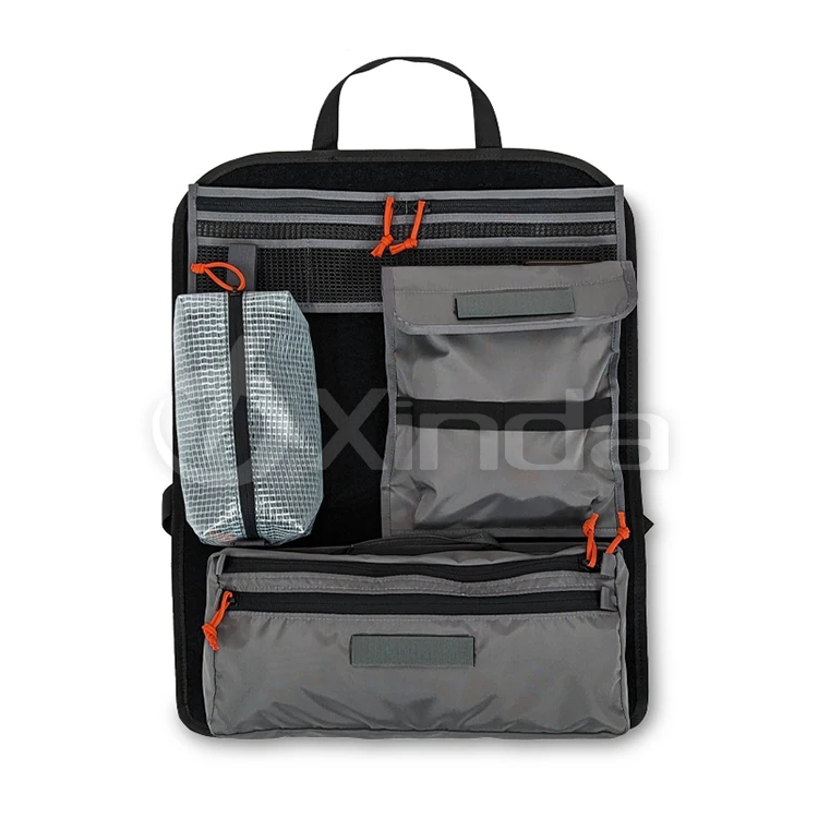 حافظات وأقسام لتنظيم الأغراض الشخصية مثل الهاتف، المشروبات، والكتب.